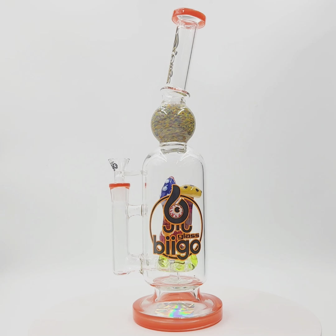 If your into wild and crazy this is the piece for you. This piece has an intricate mushroom glass figure on the inside set atop a fat circ percolator. So not only will it look awesome, but it will provide you with the filtering power you need for those smooth rips.