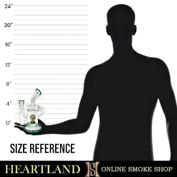 There is certainly a lot of stuff packed into a small package with this piece. First off, this bong has really thick glass, but on the inside is where the party starts. First the smoke goes through a basic circ perc directly in the middle of the water chamber, but then the recycler system takes over and brings the filtered smoke back up to an internal vortex chamber and back through the percolator. These systems all working together make sure you get very smooth and cool hits, making this piece be a great contender for use with flower or concentrates. If your looking for something small, and want a solid robust piece then this is for you.