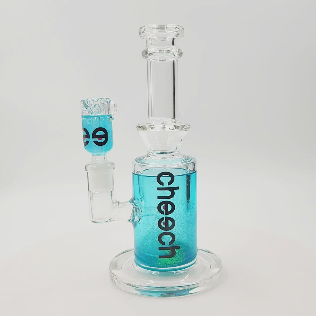 Prepare yourself for this glycerin filled Cheech bong. This piece not only gives super cold hits from its glycerin chambers, but has a circ perc, glycerin bowl head, and glitter inside of its glycerin to give it that extra pizzazz.